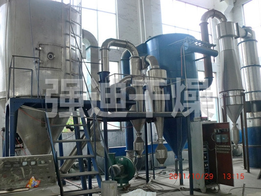 本機是利用高速離心式霧化器使物料分散成霧狀,與熱空氣充分接觸完成瞬間干燥,形成粉狀成品的干燥裝置。